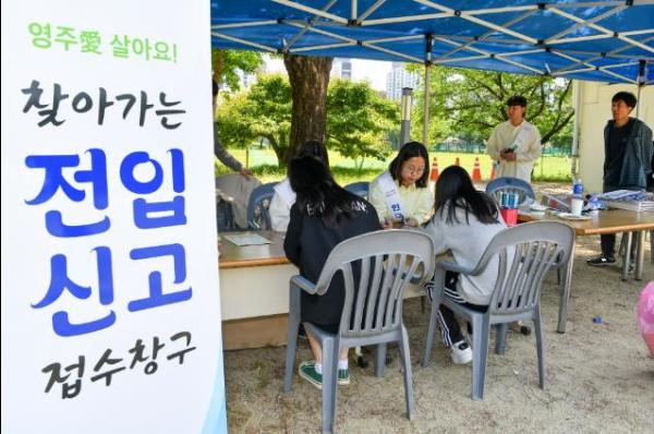 경북 영주시는 대학교 축제 기간을 맞아 9일 경북전문대학교, 21일에는 동양대학교에서 ‘찾아가는 전입창구’를 운영한다.