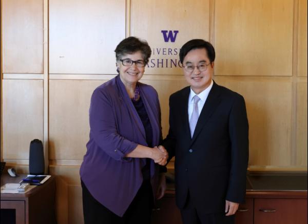 김동연 경기도지사는 먼저 현지시각 10일 오전 시애틀시에 위치한 워싱턴대 총장실에서 아나 마리 카우스(Ana Mari Cauce) 총장을 만나 경기도-워싱턴대 간 청년 사업 등 협력 증진 방안을 논의했다.