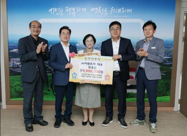 대구광역시 중구에 소재한 (주)이렌트카는 차량 렌트를 전문으로 하는 업체로, 이날 최오원 대표는 가족들과 함께 시장실을 방문해 고향사랑기부금 최고 금액인 500만 원을 기탁했다.