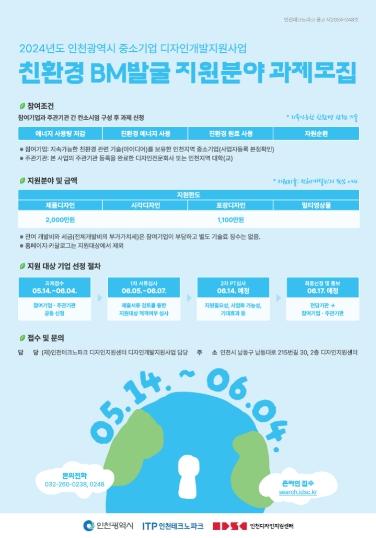 인천테크노파크(인천TP)는 ‘친환경 BM 발굴지원 분야’ 디자인 개발 지원과제를 6월 4일 화요일까지 공모한다고 밝혔다.