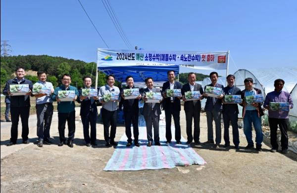 예산군은 1 , 2인가구 증가와 소비의 다양화에 따른 소비자 맞춤형 소형 애플수박 출하를 시작했다고 밝혔다.