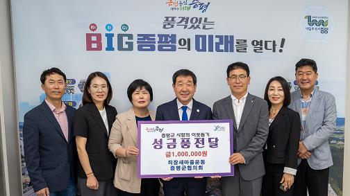 이번 성금은 지난 28일 난치병어린이돕기 자선 반기문마라톤대회에 참가한 직장새마을운동 증평군협의회 회원들의 자발적인 모금으로 마련됐다.