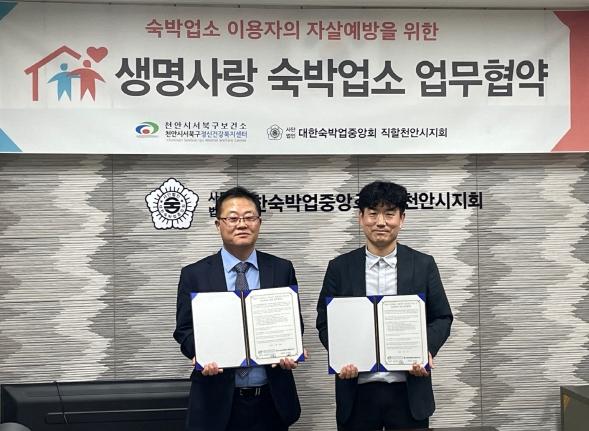 천안시 서북구보건소는 14일 (사)대한숙박업중앙회 직할천안시지회와 자살 위험 환경개선을 위한‘생명사랑 숙박업소’업무협약을 체결했다.