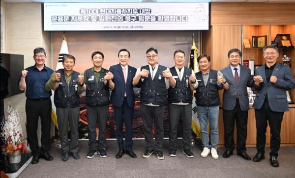 박천동 울산 북구청장과 제10대 금속노조 현대자동차지부 임원진이 14일 북구청장실에서 상호 협력방안을 논의하는 자리를 가졌다.