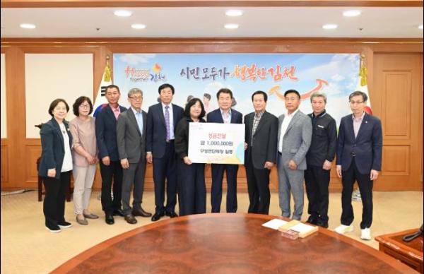 김천복지재단은 지난 14일 구성면단체장 일동으로부터 이웃돕기 성금 100만 원을 전달받았다고 밝혔다.