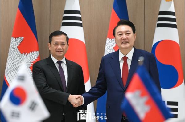 윤석열 대통령은 5월16일 오전 훈 마넷 캄보디아 총리와의 정상회담 말미에 상대국에 대한 각별한 인연에 대해서도 환담을 나눴다.