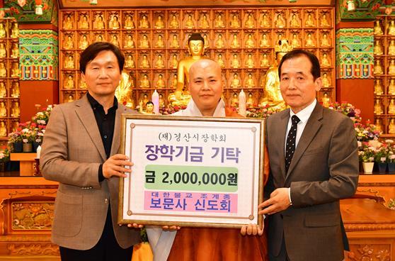 [제호(재)경산시장학회는 대한불교 조계종 보문사(주지 민홍스님) 신도회(회장 최영배)가 15일 인재 육성을 위한 장학금 2백만원을 기탁했다고 밝혔다.