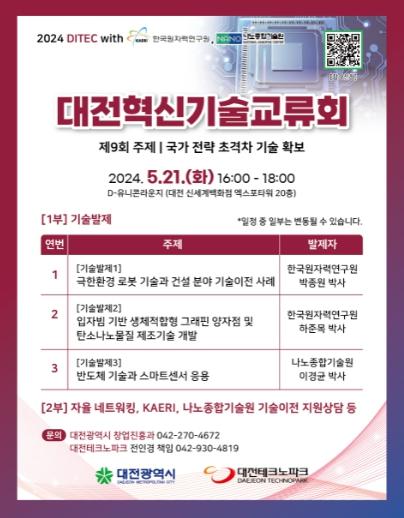 대전시는 21일 오후 4시 신세계 엑스포타워 20층 D-유니콘라운지에서 올해 아홉 번째‘대전혁신기술교류회(DITEC)’를 개최하고 국가 전략 초격차 기술을 선보인다.