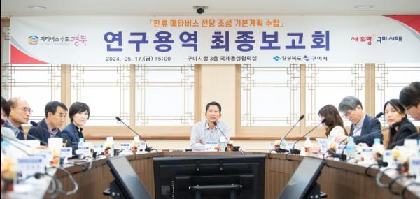 구미시는 17일 시청 국제통상협력실에서 '한류 메타버스 전당 조성 기본계획 수립용역' 최종 보고회를 열었다.