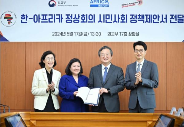 외교부는 5월 17일 개최된'시민사회 정책제안서 전달식'을 통해 사단법인 아프리카인사이트 및 국제보건애드보커시 주도로 작성한 시민사회 정책제안서를 공식 접수했다.