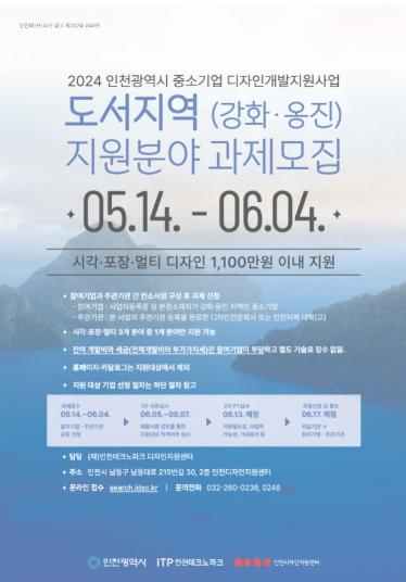 인천테크노파크(인천TP)는 도서지역(강화·옹진) 중소기업을 대상으로 하는 디자인 개발지원 과제를 6월 4일까지 모집한다고 밝혔다.