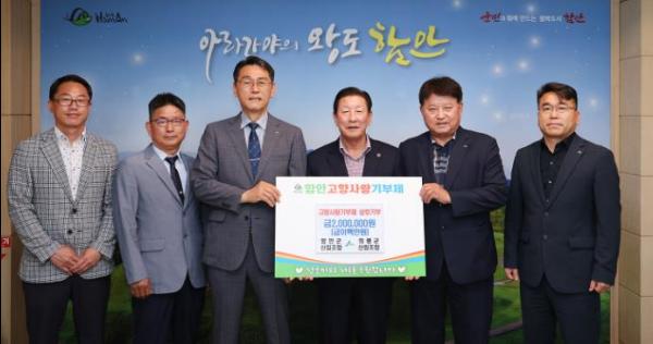 함안군은 함안군산림조합과 의령군산림조합이 고향사랑기부제의 성공적인 정착과 양 지역사회 상생발전을 위해 상호기부에 동참했다고 20일 밝혔다.