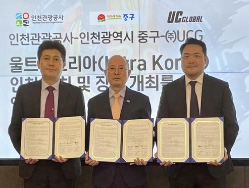 인천관광공사, 인천광역시 중구, ㈜UCG는‘울트라코리아’의 성공적인 인천 개최를 위한 업무협약을 20일 체결했다.
