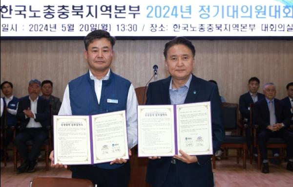 김영환 충북지사와 한국노총 충북지역본부 강국모 의장은 20일 충북 노동자종합복지관에서 개최된 한국노총 충북지역본부 대의원대회에서 도 주요 현안사업과 노동자 복지증진 사업을 포함한 10대 분야 상생 발전을 위한 업무협약을 체결했다.