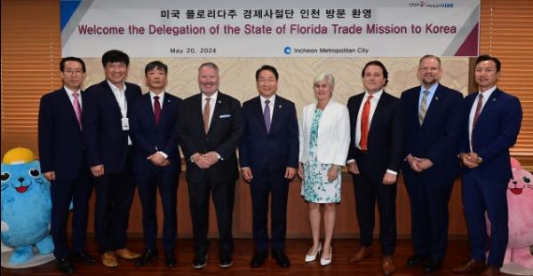 사절단은 인천시를 방문해 플로리다주의 경제·스마트시티·공항 관련 현황들을 소개하고, 도심항공교통(UAM) 분야 협력의 일환으로 오시올라카운티의 거스(GURS) 가입 의향서를 전달했다.
