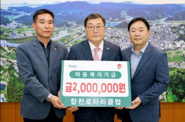 합천로타리클럽은 21일 합천군청을 방문해 아동복지기금에 2백만원을 기탁했다.