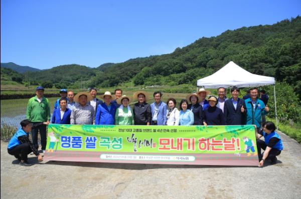 곡성군은 본격적인 벼 모내기 철을 맞아 지난 20일 전남 10대 고품질 브랜드 쌀인 '백세미' 재배단지에서 열린 모내기 시연 행사에 이상철 군수가 참석했다고 전했다.