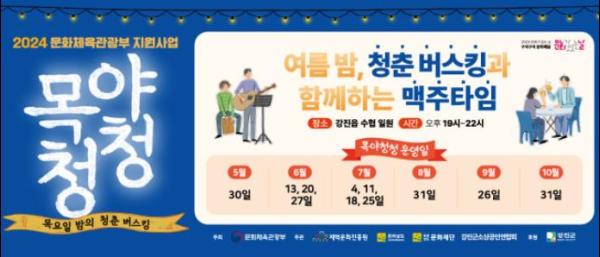공연은 강진군 수협 강진읍지점 일원에서 전국 공모로 뽑은 실력파 뮤지션들의 버스킹으로 진행되며, 공연을 볼 수 있는 목요일은 5월 30일, 6월 13일, 6월 20일, 6월 27일, 7월 4일, 7월 11일, 7월 18일, 7월 25일, 8월 1일, 8월 29일, 9월 26일, 10월 31일로 저녁 7시부터 시작될 예정이다.