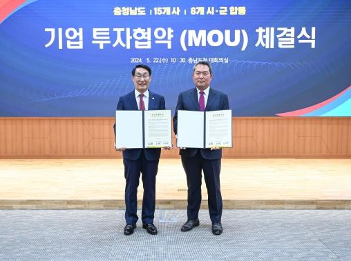한편, 이날 체결식에서는 충남도 8개 시·군, 15개사가 동시에 협약을 체결했으며, 충남연구원에서는 이번 투자유치를 통해 생산 유발 330억원, 부가가치 유발 128억원, 고용 유발 411명의 효과가 발생할 것으로 분석했다.