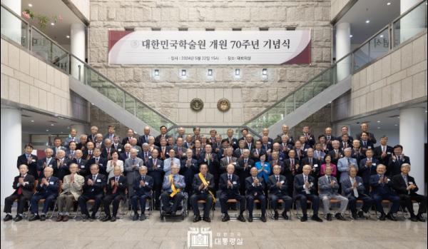 윤석열 대통령은 5월 22일 오후 대한민국학술원에서 개최된 '대한민국학술원 개원 70주년 기념식'에 참석해 헌신적 학문 탐구를 통해 국가 발전에 기여해 온 학술원의 노고에 감사와 격려를 전했다.