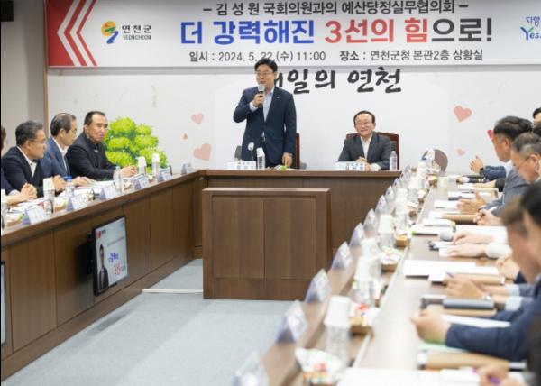 연천군은 22일 본관 2층 상황실에서 김덕현 연천군수와 김성원 국회의원, 연천군의원, 당 관계자 등이 참석한 가운데 예산당정실무협의회를 개최했다.