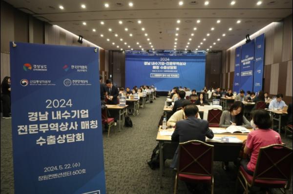 경남도는 22일 창원컨벤션센터에서 한국무역협회 경남지역본부와 함께 ‘2024년 경남내수기업-전문무역상사 매칭 수출상담회’를 개최했다.