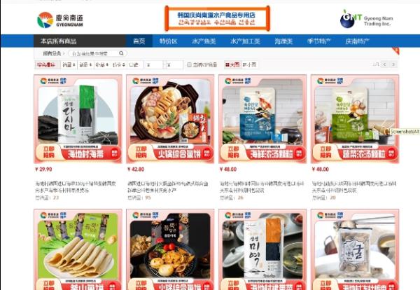 ‘수산 식품기업 글로벌 온라인몰 입점 지원 사업’은 중국 대표 온라인몰인 티몰(Tmall, 티엔마오)에 입점을 희망하는 업체를 지원하는 사업으로 경남도에서는 지난해 11월 중국 티몰에 ‘경상남도 수산식품 전용관’을 개설·운영하고 있다.