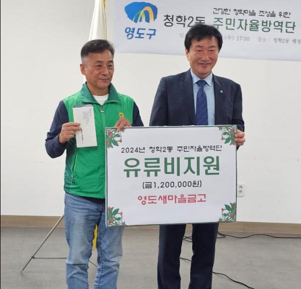 영도새마을금고에서는 지난 5월 22일 영도구 청학2동 주민자율방역단에 2024년 방역활동 지원을 위한 방역지원금(120만원)을 전달하였다.