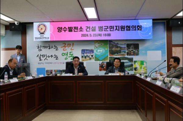 군은 지난 24일 군청 상황실에서 위원 및 관계자 등 40여명이 참석한 가운데 ‘영동양수발전소 건설 범군민지원협의회’를 열었다.