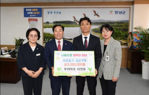 창녕읍 우리약국 대표 이연수 약사는 지난 23일, 도움이 절실한 어려운 이웃에게 전해 달라며 성금 300만 원을 창녕군에 기탁했다.