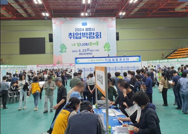 광명시 일자리센터가 기업체 구인난 해소와 구직자 취업 기회 제공을 위해 지난 23일 광명시민체육관에서 개최한 2024년 내 ‘일’ 왔어용 취업박람회가 시민 2천여 명이 참여한 가운데 성황리에 마무리됐다.