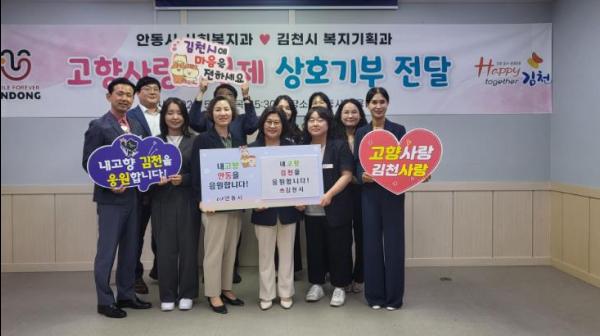 김천시 복지기획과는 지난 23일 안동시 사회복지과와 고향사랑기부제의 참여 분위기 확대와 지역 상생 발전을 위해 상호 기부 행사를 했다.