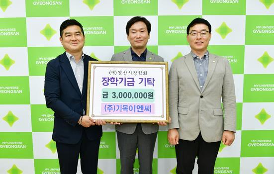 (재)경산시장학회는 ㈜기목이엔씨가 24일 시청을 방문해 인재 육성을 위한 장학금 3백만원을 기탁했다고 밝혔다.