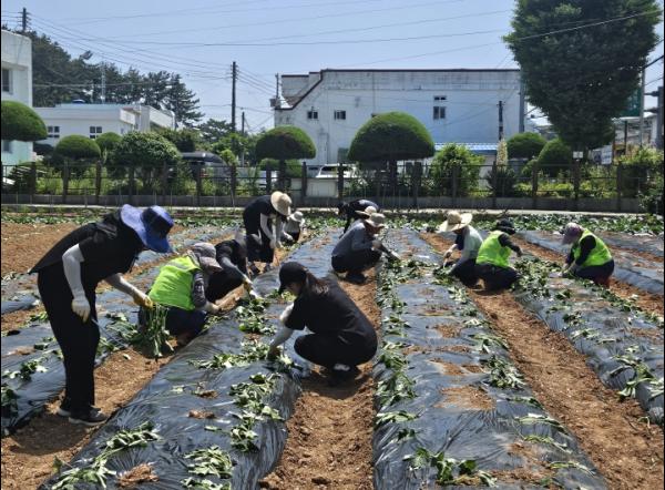 통영시농업기술센터에서는 일손 부족으로 어려움을 겪는 도산면 법송리의 한 농가에서 고구마순 심기 일손돕기를 24일 실시했다.