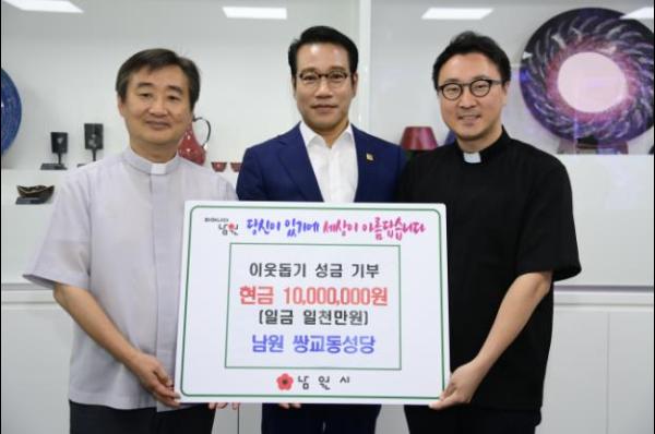 천주교 전주교구 남원 쌍교동 성당에서는 제94회 춘향제 행사 기간 음식 나눔 바자회를 열어 얻은 수익금 1,000만원을 27일 남원시노인복지관에 기부하여 훈훈하고 따뜻한 정을 나누었다.