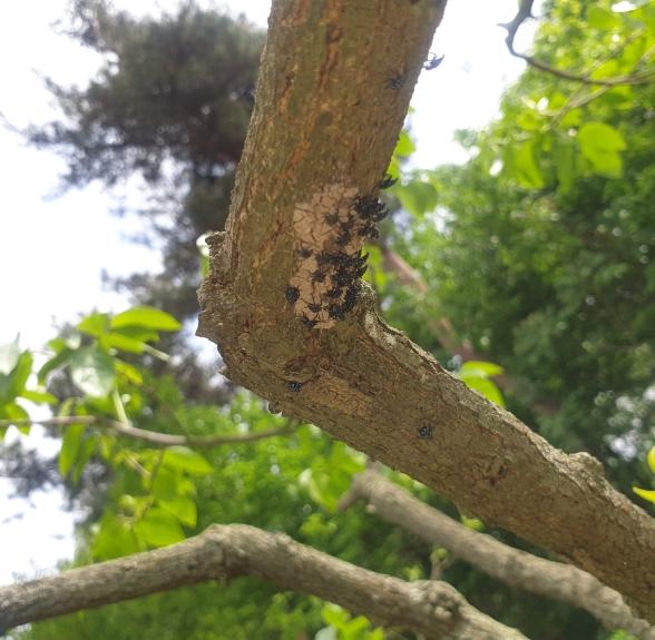 군의 예찰에 따르면 꽃매미는 지난 4월 30일, 갈색날개매미충은 5월 13일에 부화하기 시작해 최근 과수에 큰 피해를 주고 있다고 밝혔다.