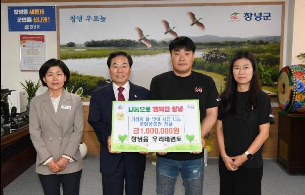 창녕군은 지난 27일, 창녕읍에 있는 우리태권도에서 가정의 달을 맞아 100만 원 상당의 성품을 기탁했다고 밝혔다.