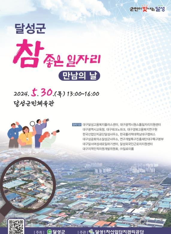달성군은 오는 30일 달성군민체육관에서 2024년 달성군 취업박람회 '달성군 참 좋은 일자리 만남의 날'을 개최한다.