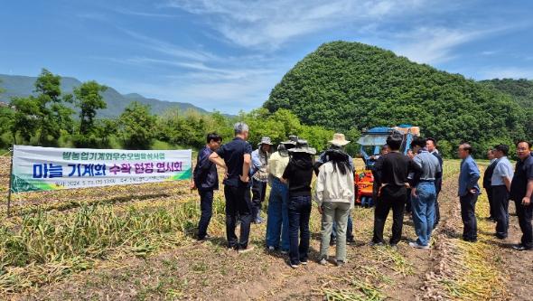 영천시는 지난 23일 신녕농협 마늘기계화공동협의회 주관으로 농림축산식품부 주산지일관기계화사업으로 임대한 마늘 줄기절단기 및 수확기 등 마늘 기계화 수확 연시회를 개최했다고 밝혔다.