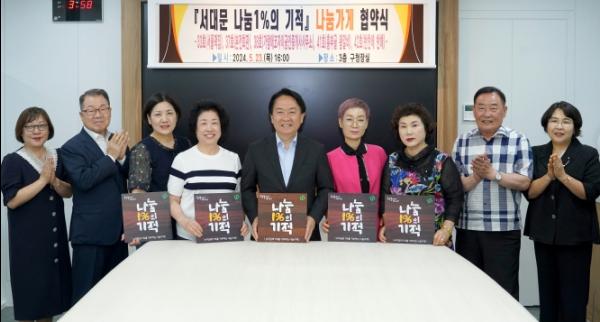 서대문구는 최근 구청장실에서 자신의 사업장 수익의 일정 부분(1%)을 지역사회에 환원하기로 한 소상공인들과 ‘서대문 나눔1%의 기적’ 협약을 맺었다고 28일 밝혔다.