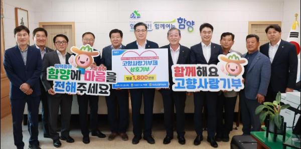 28일 오후 함양군청을 방문한 각 지자체 농·축협 관계자는 고향사랑기부제 상호기부 전달식을 통해 함양군·거창군 농협 간 1,250만원, 함양 지리산마천농협·하동 지리산청학농협 간 250만 원, 함양군·산청군 축협 300만 원을 각각 기탁하여 모두 1,800만 원을 상호기부했다.