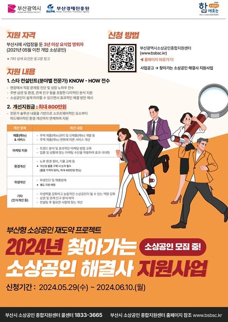 부산시와 (재)부산경제진흥원은 오늘(29일)부터 6월 10일까지 '찾아가는 소상공인 해결사 지원사업'에 참가할 지역 요식업 소상공인을 모집한다고 밝혔다.