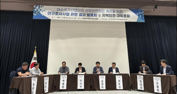 여수시와 여수산단공동발전협의회가 지난 28일 히든베이호텔에서 ‘여수국가산업단지 산업안전 개선을 위한 연구조사 발표회’와 ‘지역안전 대토론회’를 열었다.