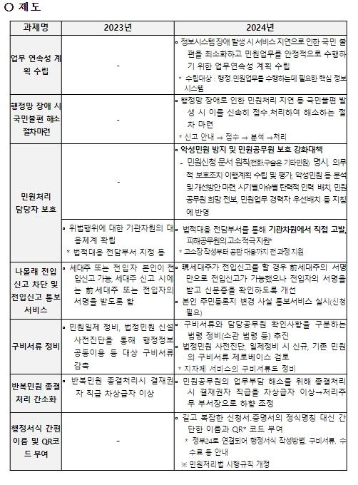 행정안전부는'2024년 민원행정 및 제도개선 기본지침'을 마련하여 전국의 행정기관에 배포했다고 밝혔다.