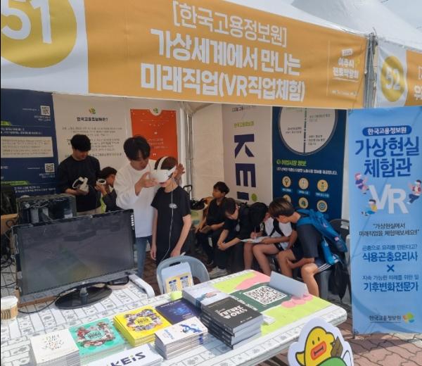 한국고용정보원은 청소년의 소질과 적성을 발현할 수 있는 다양한 진로체험의 기회를 제공하기 위해 부스를 운영한다. 부스에서는 가상현실(VR) 기기를 이용해 ‘가상공간디자이너’가 되어 가상공간 속 박물관을 자유롭게 구성해보고, ‘문화재복원전문가’가 되어 실제 발굴 현장에서 유실된 문화재를 찾고 복원하는 첨단기술을 생생하게 체험할 수 있다. 또한 ‘식용곤충요리사’가 되어 미래 식량위기에 대한 경각심을 직업 체험 방식으로 느껴볼 수 있다. 참관객은 가상현실(VR) 미래직업 체험뿐만 아니라 스마트폰을 이용해 적성검사와 흥미도 검사 등 직업심리검사도 받아볼 수 있다.