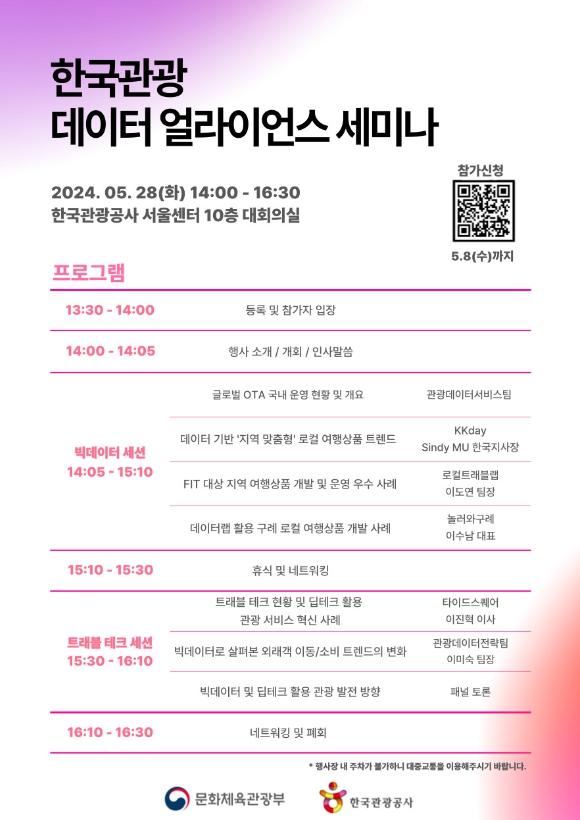 문화체육관광부는 관광산업 현장의 수요를 반영해 한국관광공사와 함께 5월 28일 한국관광공사 서울센터에서 ‘한국관광 데이터 얼라이언스 세미나’를 개최했다.