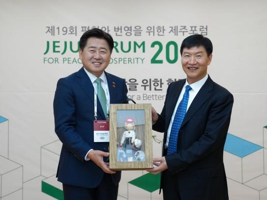 오영훈 제주특별자치도지사와 류샤오밍(??明) 중국 하이난성장은29일 오후 제19회 평화와 번영을 위한 제주포럼에서 만나 문화예술·경제·신산업·인적 교류 등 다양한 교류협력 방안을 모색했다.
