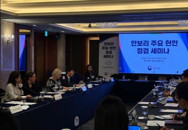 이번 세미나에는 유엔 사무국 및 국제안보 문제 전문 연구기관인 국제위기그룹(ICG: International Crisis Group)과 국제평화연구소(International Peace Institute) 인사들이 참석한 가운데, 우리나라가 유엔 안보리 비상임이사국으로서 국제평화·안전 유지에 기여할 수 있는 방안에 대한 논의가 이뤄졌다.