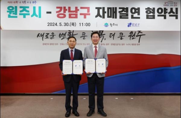 꿈이 모이는 도시, 미래를 그리는 강남구가 강원도 원주시와 30일 원주시청에서 친선결연을 체결했다.