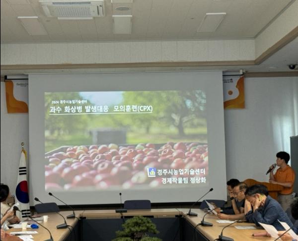 경주시 농업기술센터가 지난 23일 전 직원을 대상으로 한 과수 화상병 발생 모의훈련(CPX)이 성황리 마무리 됐다.